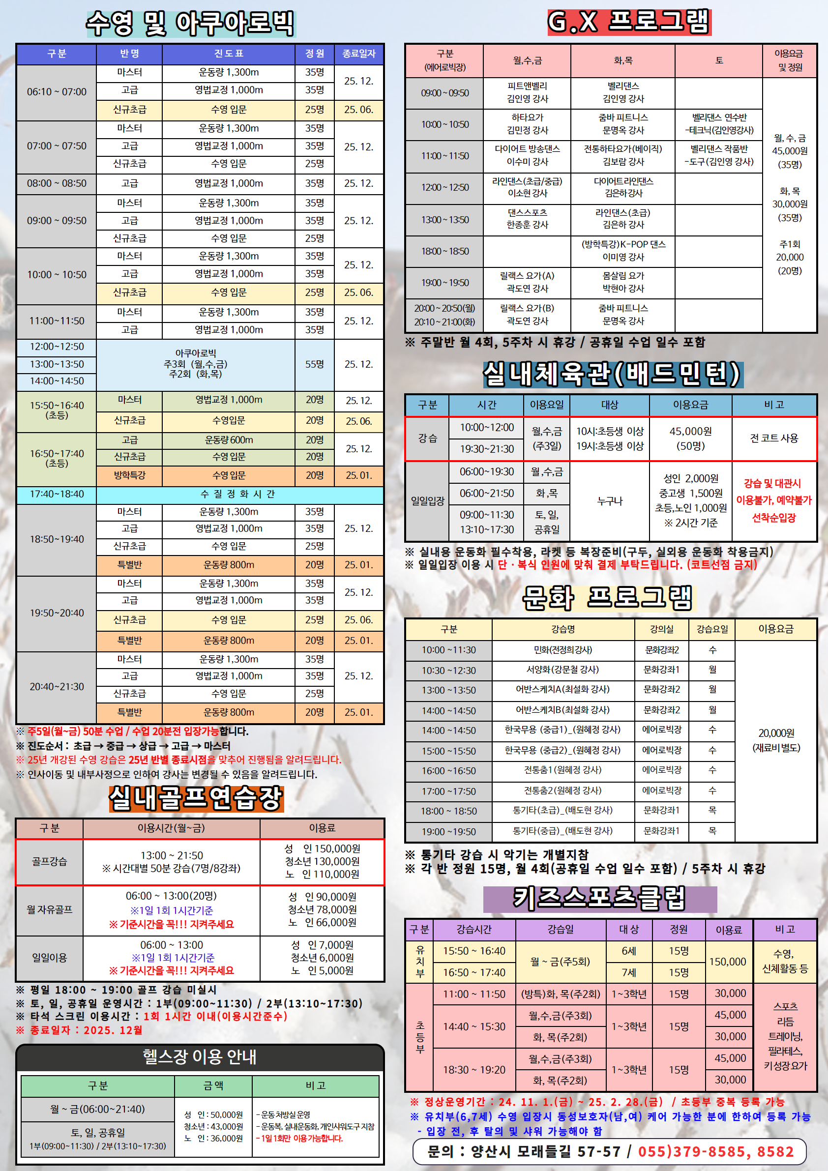 - 등 록 강 좌 : 수영, 아쿠아, 골프